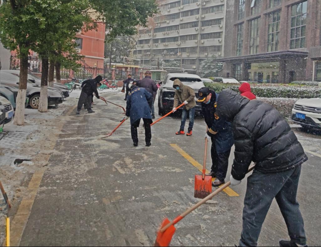 风雪来袭,行动不止。20日清晨雪势来袭,我局迅速启动极端天气应急响应。领导干部带头,服务中心等部门和物业公司工作人员顶风冒雪,分工协作,对各办公楼主要出入口、主干道路及周边关键区域开展集中清雪除冰作业,全力保障道路畅通、出行安全。