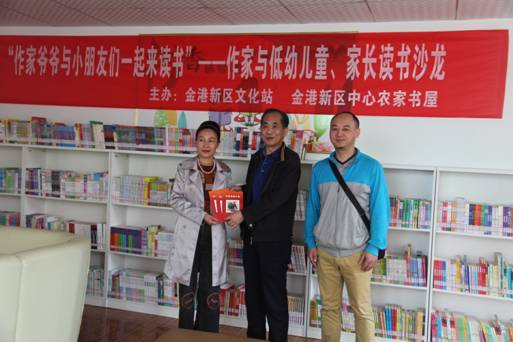 吴国红为金港新区金港一号中心农家书屋赠送防震减灾书籍
