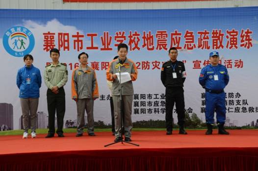 为进一步贯彻落实《中华人民共和国防震减灾法》、《湖北省防震减灾条例》,增强学校师生的防震减灾意识,促进有关单位地震应急联动响应。5月10日,由襄阳市地震局发起,市应急办、市科协、市消防支队、市聚仁救援队和蓝天救援队联合开展的地震应急疏散演练暨2016年襄阳“5•12防灾减灾”宣传周活动,在市工业学校举行。