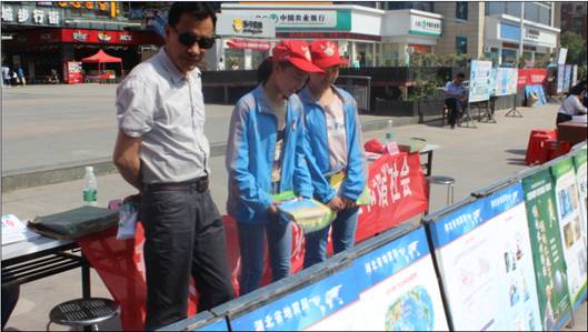 5月12日,天门市减灾委员会组织科技局、地震局、气象局、教育局、公安局、水利局、住建委、卫生计生委、安监局、民政局、国土资源局、林业局、人防办等13个单位在天门市新城CBD广场开展“5·12”防灾减灾日集中宣传。市地震局开展防震减灾宣传和咨询,出动科普宣传车布置展板20块,发放《地震常识》、《避震要决》、《中国地震动参数区划图》等宣传资料600份,市民踊跃参观、咨询,参与活动市民达到100人次。