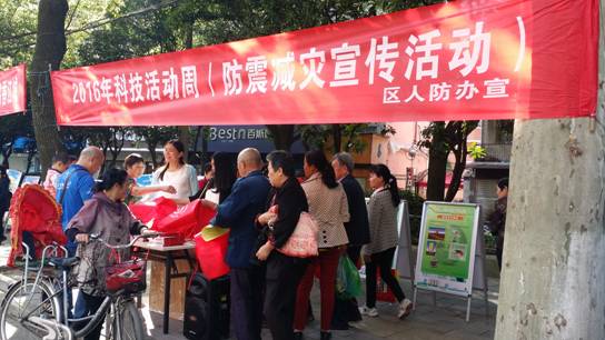 5月17日上午,武汉经开区(汉南区)民防办利用科技活动周,组织人员上街开展防震减灾宣传活动。活动中,共悬挂横幅1条,发放防震减灾宣传手册400余份、宣传品300余份,并同步利用大频率移动音响循环播放《中华人民共和国防震减灾法》和《湖北省防震减灾条例》。从视觉、听觉上强化群众的防震减灾意识,有利于群众更加牢固掌握防震减灾知识。