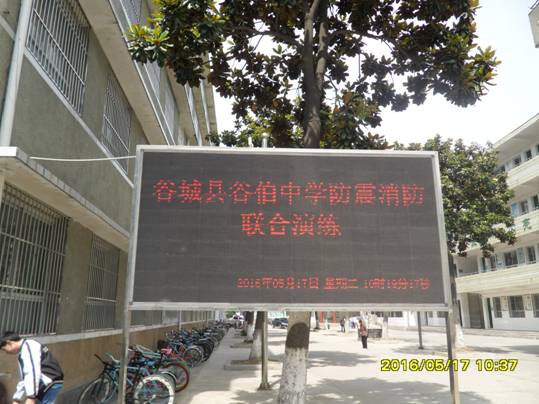 三是5月17日上午,谷城县人防办(地震局)联合县消防中队在谷城县谷伯中学举行了地震应急疏散演练、消防灭火活动。上午9点35分,学校地震演练指挥部宣布演练开始,随着第一次警报声响起,各班学生在任课教师的带领下,迅速躲到桌椅下,并用书本护住自己头部;第二声长鸣警报声响起,学生在任课教师的带领下有秩序的迅速撤离教学楼,紧张而不慌乱。疏散到操场的学生在班主任带领下,整队、清点人数,全校800余名学生无一掉队,在规定时间内师生全部到达指定安全位置。市民防办地震前兆监测台助理工程师周宁对演练进行了点评,肯定了同学们在演练中井然有序的疏散秩序,也指出了需要改进的地方。向师生们讲解了5·12的背景,以及地震来了如何紧急应对。在教学楼下摆放地震科普知识展板20块,现场为学生和老师发放资料500多人。消防队员们现场演练了灭火,为学生们讲解了如何使用灭火器,并请学生们互动,让学生亲自参加了灭火演练过程。本次应急演练活动的开展,培养了学生听从指挥,团结协作的精神,增强了广大师生防震减灾、应急自救的意识,积累了集体疏散、应急组织等实践经验和自救互救、逃生技能,完善了学校的预警机制。谷城县电视对这次演练活动进行了报道。