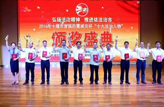 十堰市地震局通过协办和冠名2016年十堰市首届“防震减灾杯‘十大法治人物’”评选活动,进一步加大了防震减灾宣传力度,增强了全社会防震减灾意识,为促进防震减灾法律宣传教育纳入全市“七五”普法工作内容奠定了良好的基础。