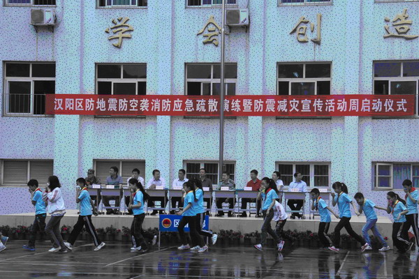 2013年5月6日上午10时,汉阳区防地震、防空袭、消防应急疏散演练暨汉阳区防震减灾宣传活动周启动仪式在翠微街翠微路小学举行。今年汉阳防震减灾工作注重突出街道、社区、学校这些基层人口密集单位,立足抓基层,打基础,求实效。区民防办选择在教室密、楼道窄、楼梯陡、疏散环境复杂的翠微路小学演练,就是着眼从难从严要求,提高全区地震安全意识。整个演练衔接紧凑,内容丰富,街道社区学校组织严密,师生居民共计1500多人参演,全区各街道人武部长、防震减灾助理员以及各学校代表观摩了综合演练,市地震办、汉阳区委常委区人武部到现场指导。