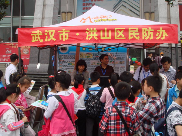 此次活动内容丰富,精彩纷呈,活动现场人头攒动。武汉市、洪山区民防办借此阵地,积极开展了四个一的民防知识宣传:摆放一组防震知识展板;发放两本防震知识手册;印发一份防空防灾知识宣传单;播放光碟《民防模拟卷》;开展一次集中咨询。宣传活动吸引了大量人群,其中动漫片《民防模拟卷》还吸引了在场小学生的喜爱驻足观看,获得了他们的喜爱。