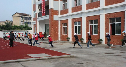 5月25日上午,随着警报声响,各班学生在班主任的指导下快速有序的按照安全疏散路径;弯腰猫步,用书本护住头部,部分肢体残疾孩子也由班主任或老师们背着、抱着,迅速撤离到安全地带,随即各班主任清点人数,并向校领导汇报,演练共用时不到三分钟,师生全部安全到达指定的地点。
