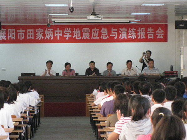 5月11日上午,为提高中学生防灾减灾意识和应急避险能力,襄阳市襄州区地震局、民政局、教体局在市防震减灾科普示范学校--襄阳市田家炳中学联合开展了防震减灾知识讲座和应急避险、逃生演练。
