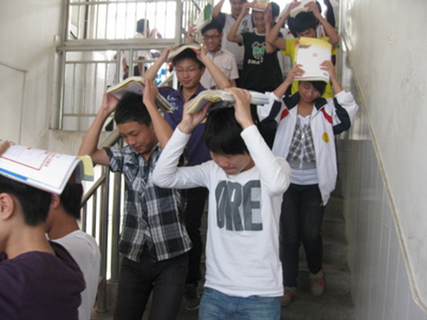 整个宣传活动包括地震科普报告会、观看地震自救与互救宣传片、应急避险演练、应急逃生演练和观看地震宣传图片展五个部分,学校悬挂了宣传横幅,高一年级200名师生在多媒体教室参加了学习和演练。