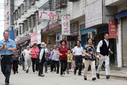 在5.12汶川地震四周年之际,为增强社区居民对突发性自然灾害事件的反应和处置能力,提高公众自救互救的防震减灾意识,5月12日上午,县政府办牵头,县应急办、县地震局、县卫生局、县电视台、黄梅镇政府联合在黄梅镇城西社区举办社区地震应急演练,社区500余人参加了演练。