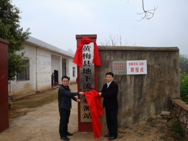 2012年3月29日上午,黄梅县地下流体观测站举行了揭牌仪式。县政府办副主任熊啸闻、县地震局局长钱国及全体工作人员参加了仪式。