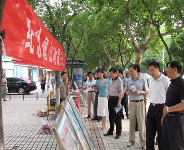 荆门市人大、市政府、市政协领导在荆门市民防办主任、地震局局长程运平的陪同下参观指导宣传活动