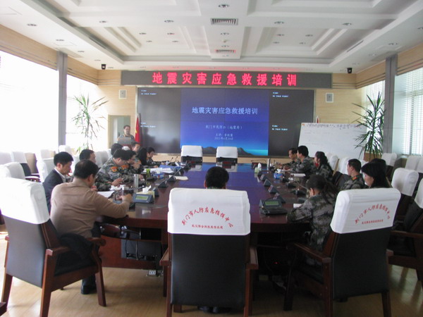 2011年4月14日,荆门市地震局在应急指挥大厅开展了地震灾害应急救援业务培训,局长程运平、副局长陈克珩、纪检组长杨洪,荆门市地震灾害应急救援大队全体成员参加了培训。此次培训是荆门市地震局应急救援工作的一项工作计划,是荆门市地震灾害应急救援大队成立后的一次专业培训。培训内容包括:地震基本知识、应急常识、现场应急工作、应急救援包功能和使用等。