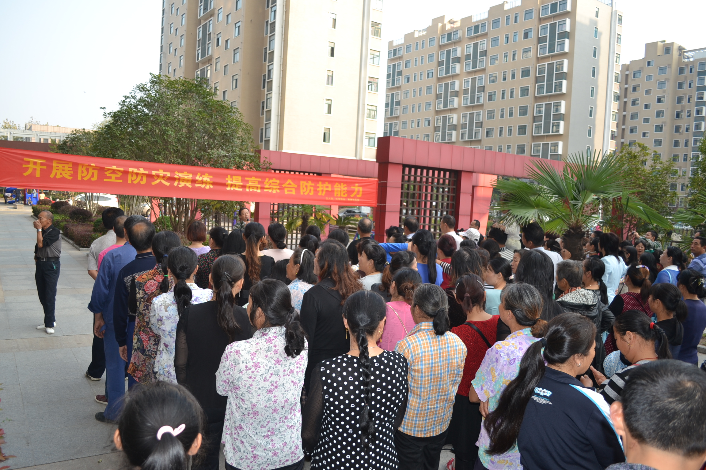 今年是武汉沦陷77周年,为了警醒广大市民牢记历史,勿忘国耻,提高防空防灾意识和战时或灾时自救互救能力,同时检验人防部门应对战时或灾时应急行动与指挥通信保障能力,10月25日下午4时,伴随着全市尖利刺耳的防空警报声,新洲区人防和地震办联合邾城街章南社区和虹景新都小区物业组织近300名小区居民开展了防空防灾疏散演练。
