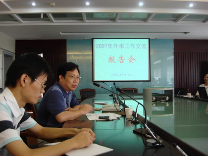 2007年9月4日,中国地震局地震研究所举行了对外交流与合作报告会,邀请了2007年度地震研究所参与合作交流、考察、参加国际会议的科技人管理人员介绍对外合作与交流取得的进展和成果。