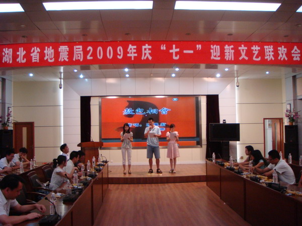 为迎接2009年公开招聘录用的20余名新职工,湖北省地震局于2009年7月10日下午举办了2009年度迎新文艺联欢会。机关各处室、下属各单位负责人以及部分干部职工参加了联欢会。