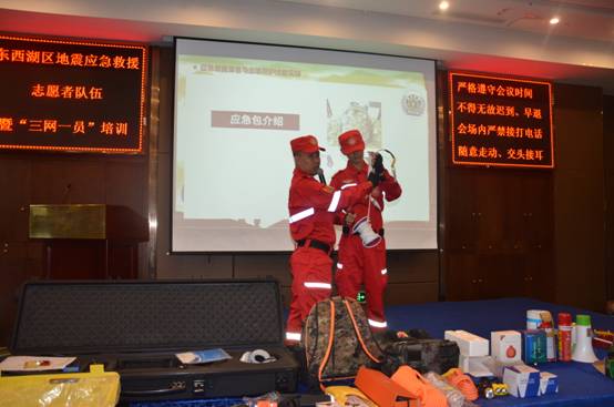 本次培训重在实践体验和操作。志愿者队伍参观了防空防震科普馆,通过身临其境体验灾难发生时的场景和现场讲解,掌握了一定的自救互救技能;在体能训练环节,志愿者们通过团结协作完成了教练布置的团队卓越圈、极速150等训练项目;在应急装备讲解与操作环节,志愿者们在民政部紧急救援促进中心高级应急救援员讲师巫红斌的指导下操作了生命探测仪、破窗器、多功能组合工具、撬杠等救援设备,并对紧急医疗救护进行了现场演练,切实掌握了救护基础技能;在理论课上,省地震局震害防御处副处长褚鑫杰为志愿者们生动讲解了地震应急救援基本知识,让志愿者们了解了地震应急救援概念、作用及组织体系。