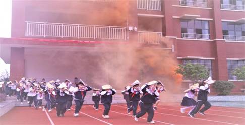 上午9时,随着警报声响起,模拟发生地震,演练正式开始,各班老师迅速组织学生双手抱头,紧急指导学生有序进行疏散,引导学生通过安全通道紧急疏散到操场集合。为了使演练效果更加真实,现场模拟有两名师生被困,请求外部救援,消防救援人员立即开始搜救,找到“被困”伤员后,迅速交给医疗救助组,进行伤口包扎演示等等。技术组通过无人机拍摄,并利用多媒体,全程向全市师生及市民推送直播,观看人数达到40万人次。