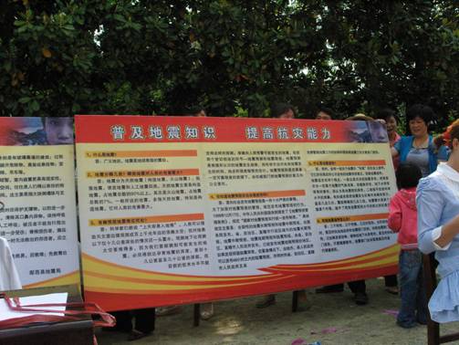 近年来,媒体的广泛报道,市民对了解地震,掌握避震方法等基本地震知识的渴望显得亦常迫切,地震宣传展区非常热闹,群众和学生纷纷挤在地震咨询台前,索要地震知识宣传单。县委常委宣传部长王丽媛、县人大常委会副主任李昌菊、县政协副主席张禄良等县领导和河夹镇的部分领导也亲临地震局咨询台,徇问地震工作,查看宣传单,鼓励地震部门开展形式多样的地震科普知识宣传活动,提高市民防震减灾意识,增强防震避震本领。
