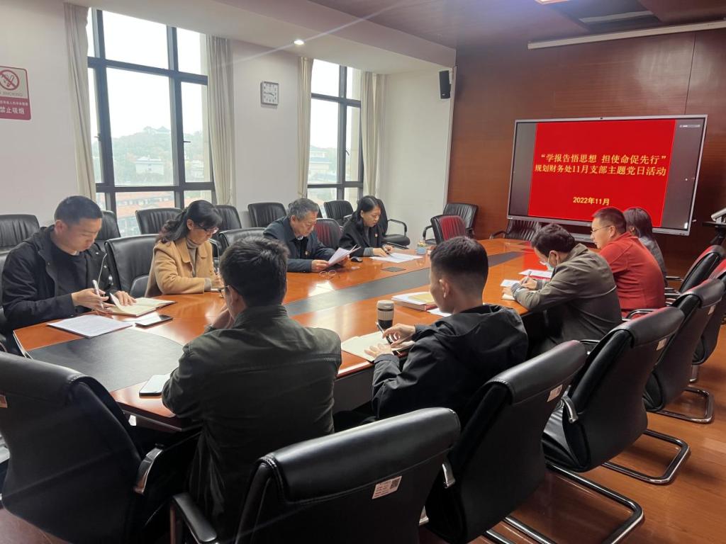 11月28日,规划财务处党支部组织开展“学报告悟思想 担使命促先行”主题党日活动。会议由支部书记余涛主持,支部全体党员参加。