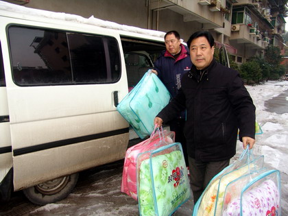 元月30日下午3时54分时,省地震局接到省直机关工委要求紧急捐赠御寒棉衣、棉被的电话通知后,局党组号召机关干部职工,发扬扶危济困的中华民族传统美德,积极向灾民捐款,帮助灾民在大雪纷飞的寒夜里睡个暧和觉。局工会、后勤服务中心迅速组织有关人员将募集的捐款购置御寒棉被,及时送到省备灾中心,为受雪灾的群众献上了一份浓浓的爱心。
