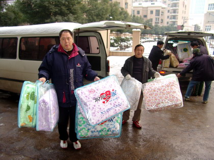 2008年元月30日下午5时02分,湖北省地震局将机关干部用6000元捐款购买的60床成品棉被和30件棉衣送到了省备灾中心,这也是省备灾中心在部署救灾物资捐赠接收工作的同时,第一批收到的省直机关干部捐赠的御寒棉被。