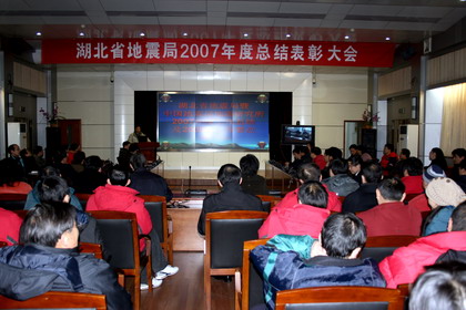湖北省地震局(中国地震局地震研究所)于2008年1月18日上午召开了2007年度总结表彰大会,局(所)领导和全体干部职工参加了会议。